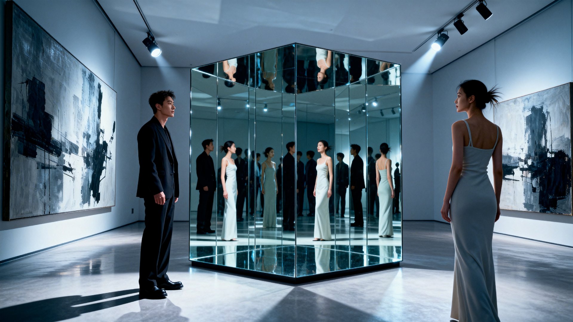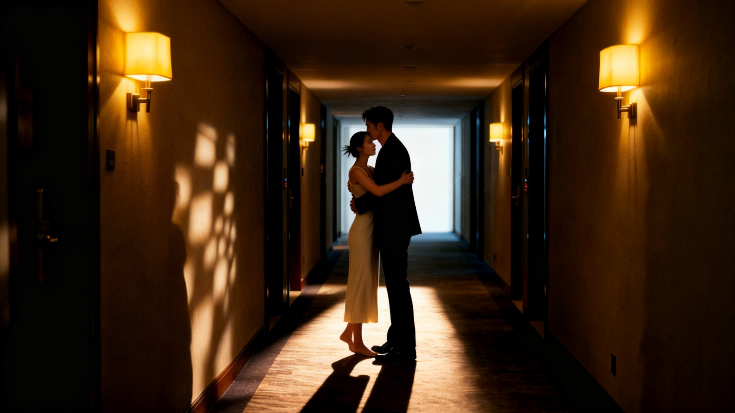 生成五张男演员和女演员在博物馆相遇的分镜,并生成拥抱的视频